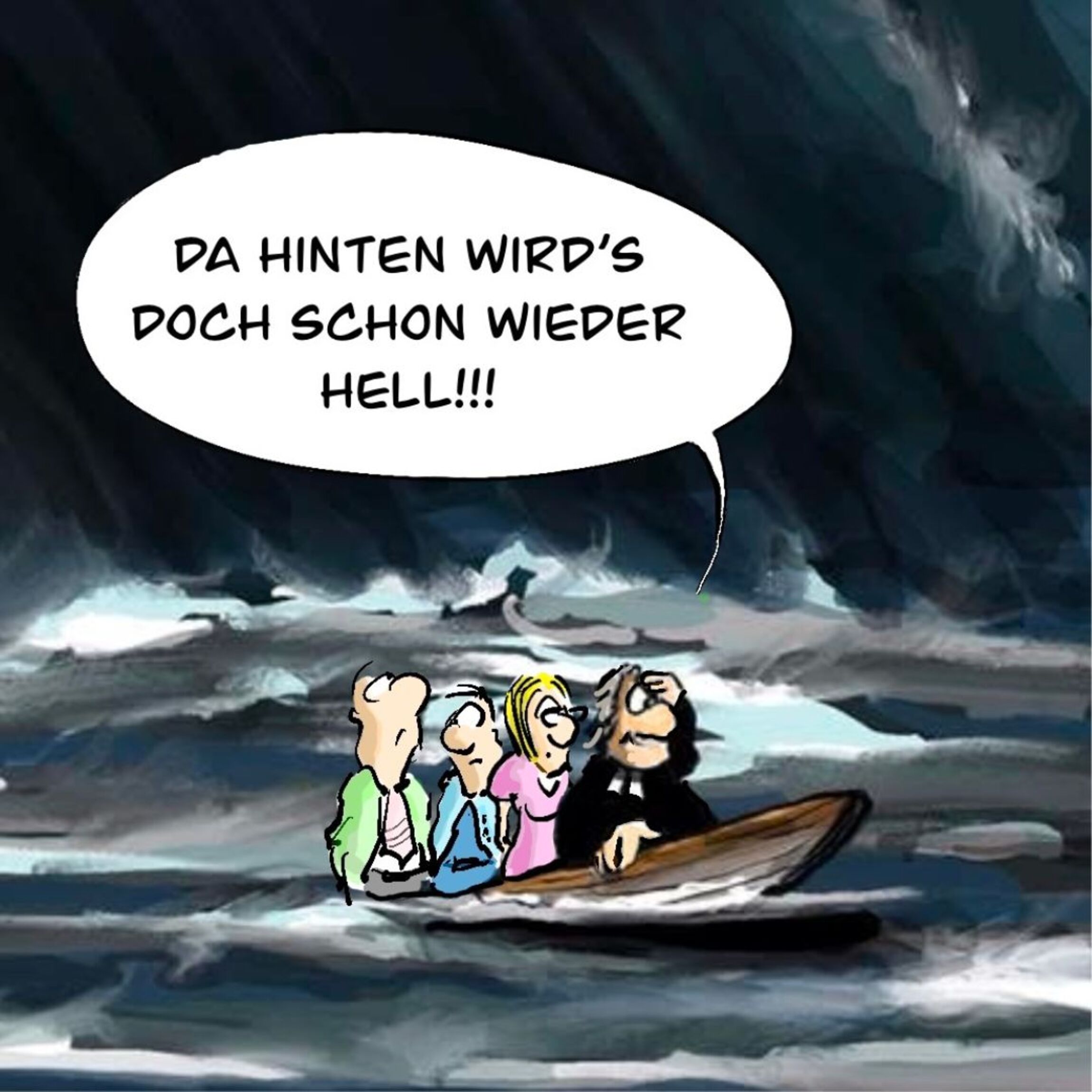 Es ist kompliziert. Aber: „Dahinten wird‘s schon heller!“ Schließlich liegt da einer schlafend mit im Boot – ein Symbol für Vertrauen gegen den Augenschein. Gemeinsam mit Ihnen halten wir Ausschau nach dem Lichtstreif am Horizont bei der nächsten Welle-Konferenz.